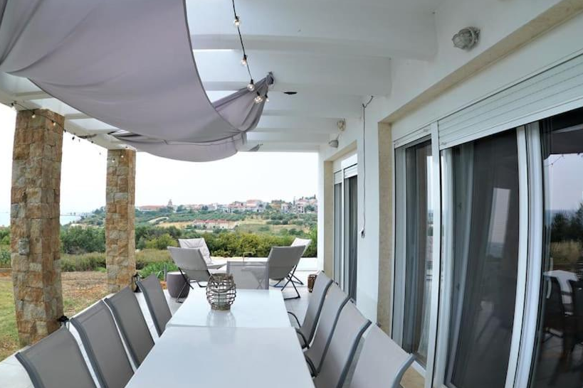 Lovely Sunset -Villa Zoom in Nea Moudania offers a spacious villa with five bedrooms and three bathrooms. The property includes a living room and family rooms, ensuring comfort for all guests. Outdoor Spaces: Guests can relax in the garden or on the terrace, enjoying sea views and a hot tub. The terrace is equipped with outdoor furniture and a barbecue, perfect for alfresco dining. Modern Amenities: The villa features free WiFi, air-conditioning, and a fully equipped kitchen. Additional amenities include a washing machine, dishwasher, and streaming services. Convenient Location: Located 33 mi from Thessaloniki Airport, the property is 1.6 mi from Paralia Nea Potidea and 14 mi from the Anthropological Museum & Cave of Petralona.