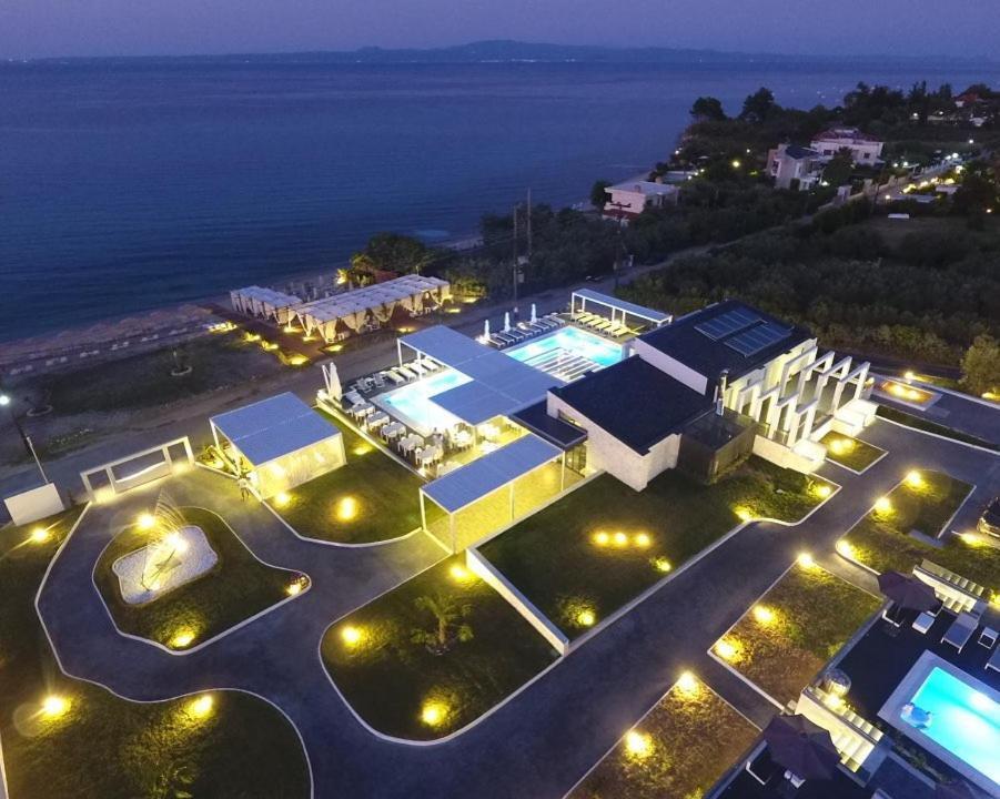 Crystal villas & suites in Polykhrono offers direct beachfront access with stunning sea views. Guests can relax on the sun terrace or take a dip in the seasonal outdoor swimming pool.