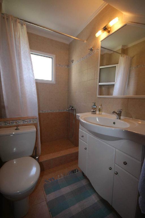 Regyna cottage (85 m2) is located in Sithonia, on the first sea line. The house is located in a picturesque and quiet residential complex, surrounded by a large lush garden. Bay view is available only to residents of the complex.The house is built in three levels. It can comfortably accommodate up to 6 people (extra beds in the living room). Ground floor: living room, fully equipped kitchen and bathroom. Second floor: two bedrooms with double beds and wardrobes, and a bathroom with shower and toilet. Third floor (attic): bedroom with two single beds and one bathroom with shower and toilet. All rooms have air conditioning and heating system.