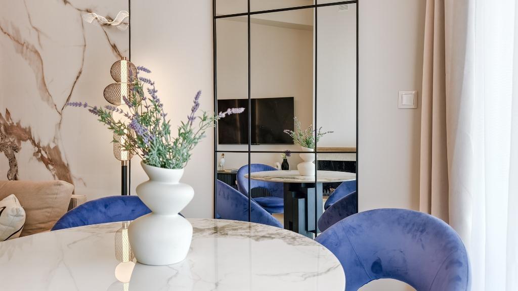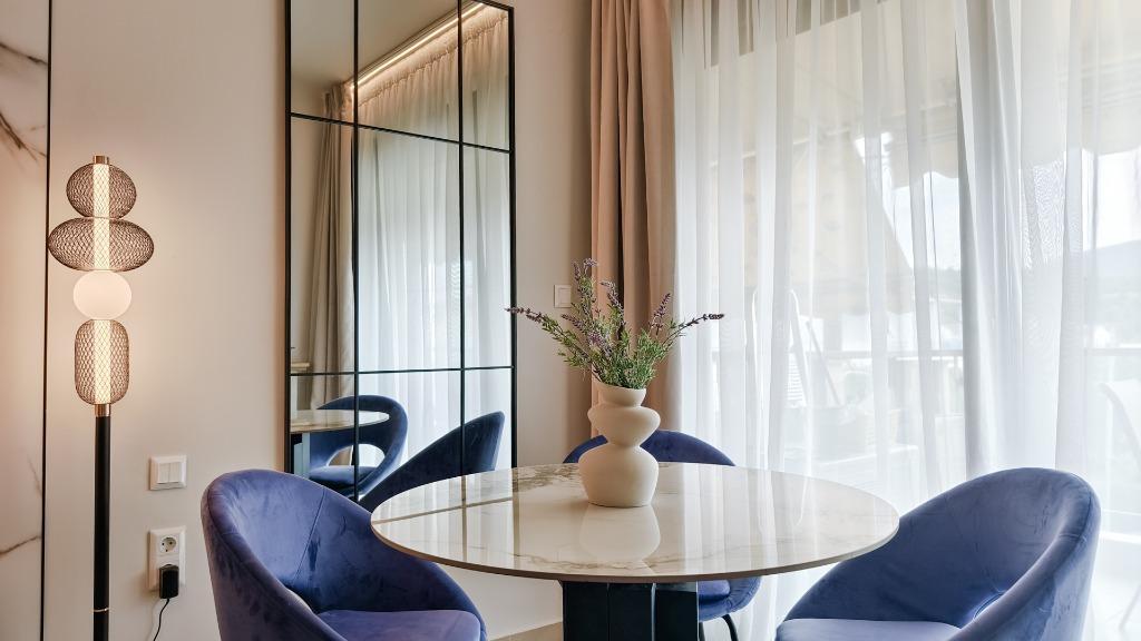 - Bathroom with bath and WC.The apartments are fully furnished. Amenities: washing machine, TV, 2 air conditioners (one in the living room and the second in one of the bedrooms), refrigerator.
