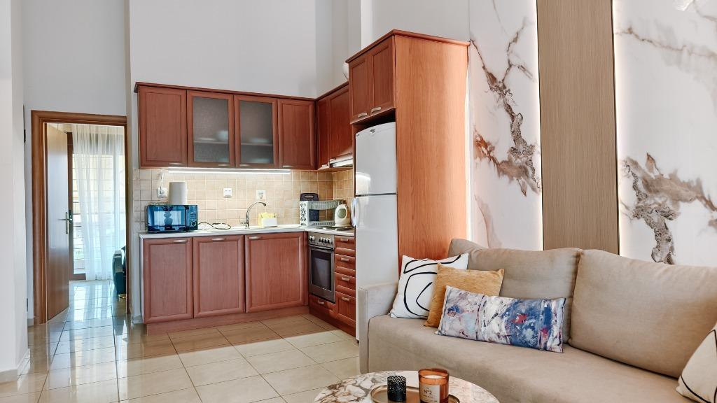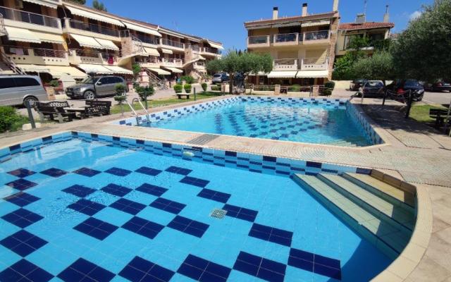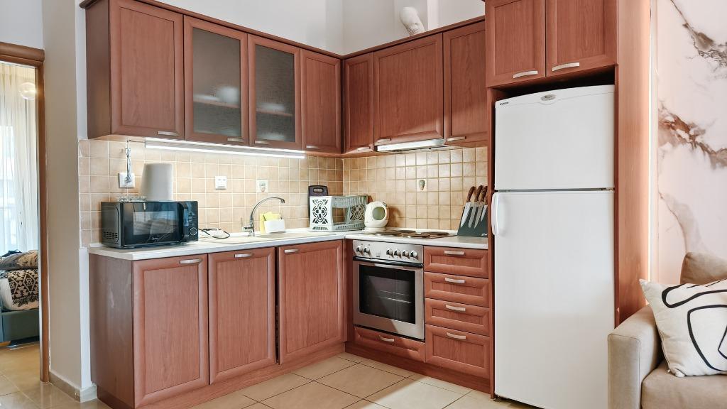 Lovely apartment complex, located in the tourist town of Gerakini, first sea line, with a shared pool. Apartments are located on the third floor.Inside: